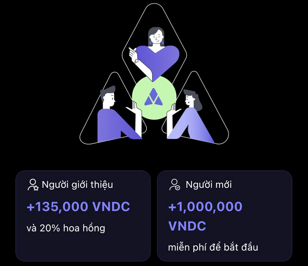 1. Khi bạn đăng ký và xác minh danh tính thành công. Bạn sẽ có ngay 1.000.000 VNDC tương ứng với 1.000.000 VNĐ