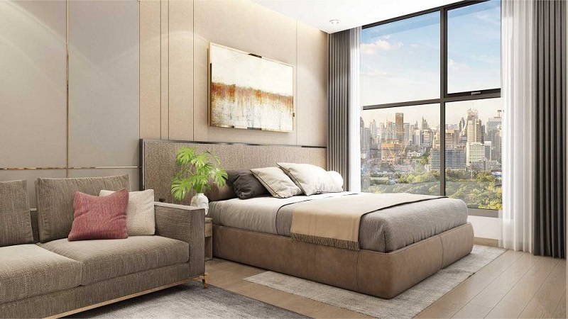 - Phòng ngủ: có cửa sổ lớn hướng ra ngoài không gian, giúp lưu thông tốt nhất cho phòng ngủ