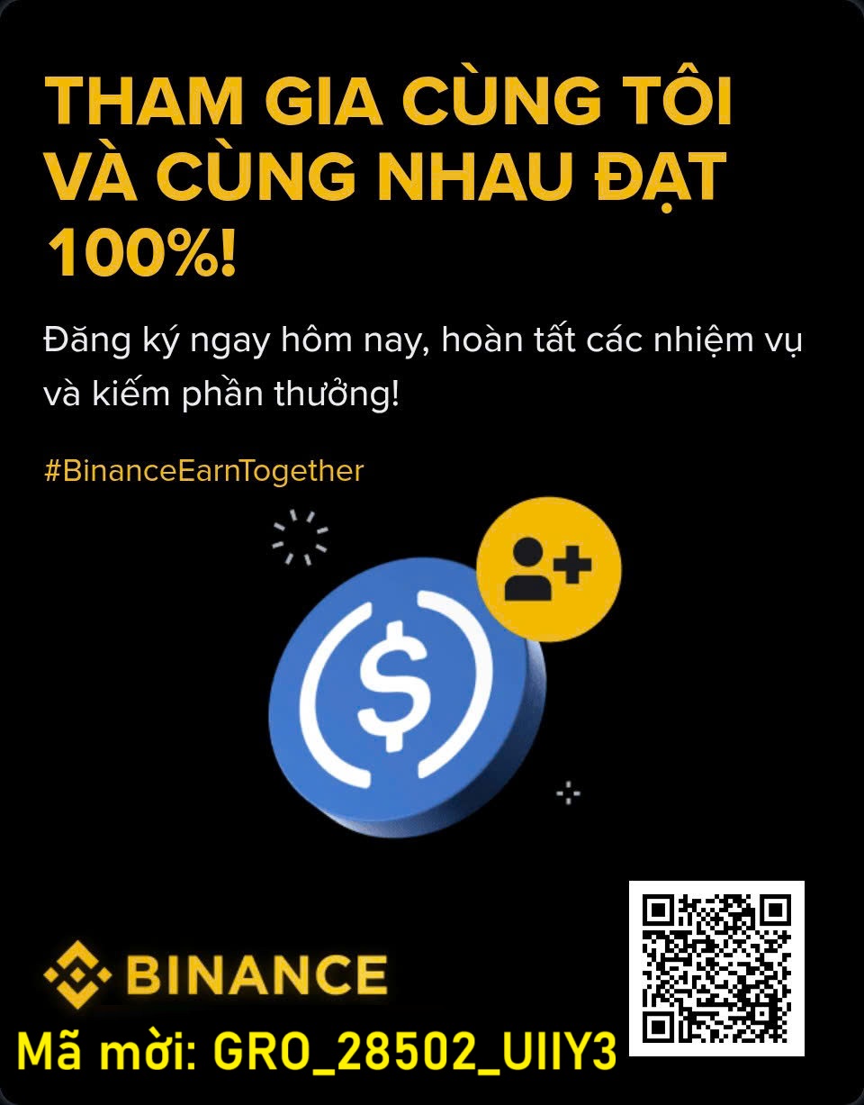 "Đăng ký qua link hoặc mã mời để nhận thêm 100 USDC"